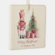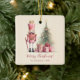 This adorable pink Nutcracker is in a Christmas Eve scene along with decorated holiday tree and a bunch of pretty pink presents, too. The scene is from a vintage watercolor design.