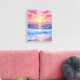 Pink Ocean Waves Sunset Watercolor Canvas Painting
