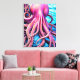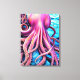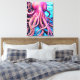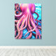 Pink Octopus Blue Ocean Wave Background Canvas Print