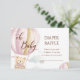 This delightful "Oh Baby" baby shower diaper raffle card features an adorable teddy bear floating in a hot air balloon. The card uses a mix of script, serif, and sans-serif fonts for a modern and stylish appearance. On the back are the pink watercolor stripes. Additional matching items are also available.