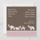 Playful pink elephants line up to welcome friends and family to a baby shower in hon or of the new Mum. There is plenty of room to add resitration and hostess information on the back too.