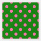 Green Colour Background With Pink Polka Dots Seamless Repeat Pattern Design