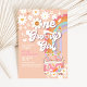 Pink One Groovy Girl Daisy Rainbow 1st Birthday Invitation