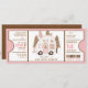 Make your little girl's special day a memorable one with this unique and whimsical One Happy Camper First Birthday admit one ticket invitation! This invitation features a cute brown bear and soft pink camper van with pine tree pattern on the backside.