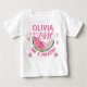 Sweet watermelon or melon themed first birthday t shirt featuring a large watermelon slice, hearts and modern calligraphy text. This girl's one in a melon shirt is ideal for a baby girl's summer first birthday party.