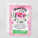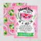 Looking for a cute pink watercolor one is a melon birthday thank you card? This design features various watermelon slices and some decorative elements and text on a pink watercolor background. This is cute way to thank guests for coming to your little girl's melon themed first birthday party.