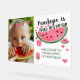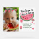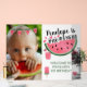 Cute pink green one in a melon theme girl's first birthday party acrylic welcome sign with watermelon items. Replace the placeholder photo with your own baby photo. A great birthday theme for summer! The back of the invite is a watermelon bleeding off the page, pink green and seeds. See the full collection of matching items for this design at: https://www.zazzle.com/collections/one_in_a_melon_baby_birthday_party-119209815727560938