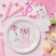 A fun and playful paper plate for your little one’s big day. This “One Silly Goose” design features a happy white goose floating with pink balloons against a soft sky background. Personalised with your child's name, it's a perfect match for a silly goose-themed first birthday party.