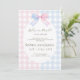 Is it pink or is it blue? Celebrate your baby's big reveal with this adorable gender reveal invitation! Featuring sweet bows and a classic gingham pattern in pink and blue, this design sets the perfect tone for a fun and festive baby shower. A charming mix of playful and traditional, ideal for any boy or girl reveal party.