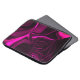 Image with curves and purple and pink traces on a dark background, where pink ripples can cause the perception of metallic or nickel-plated.