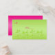 This lime green, hot pink, and orange floral place card matches the wedding invitation shown below.