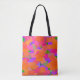 Hot pink, bright purple, lime green, orange graphic designed tote bag.