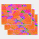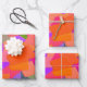 Hot pink, bright purple, lime green, bright orange graphic designed wrapping paper sheets.