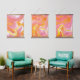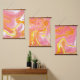Pour painting style marble fluid art in pink, coral, yellow and orange modern abstract art.