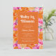Pink Orange Baby in Bloom Floral Retro Baby Shower Invitation