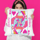 Pink Orange Blue Queen of Hearts Custom Throw Pillow - personalise with recipients name.