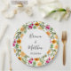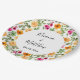 Pink and orange simple floral elegant script wedding paper plates for your wedding reception, rehearsal dinner and bridal shower.