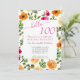 Pink Orange Floral Elegant Script 100th Birthday Invitation