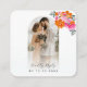 Modern, trendy RSVP enclosure cards, featuring custom arch shaped photo, watercolor pink and orange floral, custom editable text & QR code. Easily add your details by clicking on the "personalise this template" option.