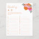 Pink Orange Floral Wedding A-Z Bridal Shower Game