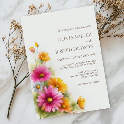Pink Orange Floral Wedding Invitation