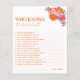 Pink Orange Floral Who Knows the Bride Best Game
