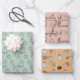 Set of three flat sheets of wrapping paper, one each of: Grateful Pumpkins on green, Grateful Thankful Blessed pumpkins on pink, and assorted Pumpkins and Gourds on orange.
