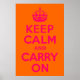A modern tangerine orange and orange version of the Keep Calm and Carry On classic.