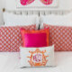 Refresh your room! Chic trendy colourful pink and orange pagoda trellis and floral frame monogram initials pillow. Click Personalise It to add your monograms (First, Last, Middle in that order) and create your own unique one of a kind lumbar pillow design! Part of the Decorate Your Bedroom | Ikat Collection. © Marisu Valencia™.