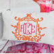 Pink Orange Pagoda Flower Frame Monogram Initials Lumbar Cushion