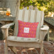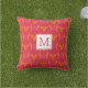 Super stylish outdoor pillow featuring a pink and orange floral Ikat pattern. Choose to have the monogrammed initial side showing or flip over to have the plain patterned side showing. Your choice - so versatile!!! Perfect for a porch, patio, pool area, beach house or garden shed. Use the drop down menu if you'd like to change to indoor material.