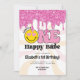 Pink Orange Retro One Happy Babe 1st Birthday Invitation