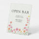Pink Orange Wildflower Wedding Open Bar Pedestal Sign