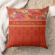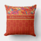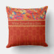 A chic Throw Pillow or Cushion to personalise, with Orange, Yellow and Pink Poppies on a Sky Blue background, teamed with a coordinating red damask-like pattern. This bright, floral design is part of the Posh & Painterly 'Poppy Fields' collection.