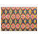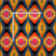 Vibrant fabric design featuring a seamless pattern made of organic shapes in shades of pink, orange, yellow, teal, black and purple.