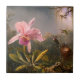 Pink Orchid and Three Hummingbirds tile. Oil on mahogany panel from 1871. Martin Johnson Heade was an American landscape and naturalist painter who frequently depicted birds and flowers. Orchids and hummingbirds were some of his favourite subjects, and this painting stands as one of his most beautiful. Cattleya Orchid and Three Humingbirds depicts a Cattleya orchid surrounded by two Brazilian amethysts hummingbirds and a red-tailed Sappho Comet hummingbird in the midst of a jungle at sunset. A beautiful gift for fans of Martin Johnson Heade, orchid paintings, hummingbird paintings, and nineteenth-century naturalist paintings.
