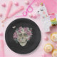 Pink Orchid Floral Skull Halloween Party Paper Plate