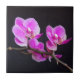 Tile with photo of pink moth orchid (phalaenopsis) flowers against a black background.