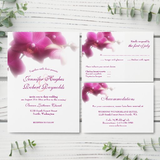 Wedding response card matching Pink Orchid wedding collection. Size 5"x3.5".