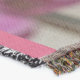 A quality printed throw has its advantages. This is a much finer weave throw than its loopier cousins, and though lighter, it is worth the investment for custom room accessorizing. The back is much prettier than the typical brown, and the fringe on the long sides very vivid, the selvage nicely done. Before photographing, I washed the throw in cold water, delicate, with a thicker woven throw the same size. On tumble dry low, this throw was dry in half the time as the other. This is a very practical quality if you use throws for furniture covers or to wrap up in frequently. The sleekness of the fabric makes it a great layer for accenting or protecting without the feeling of sitting on too much stuff. Perfect for napping or when you feel a light chill coming on. The color printing is beautiful and on this fabric, matched the design and color of my Photoshop image. This is an advantage for blending room fabrics and colors. The fringe on the short sides prints the colors from the design image and therefore varies from the side fringe. I streaked a white fractal line through the plaid pattern to give the illusion of weaving. This printed as crisp as an illusory thread, and put some white in the short side fringe, showing another advantage of print vs loomed- for artistic purposes, line lines, detail, and color integrity can be planned and preserved. My loomed throws have color limitations and more of a needlepoint texture. Print throws reproduce an exact image. The throw felt a little stiff straight out of the package, but this went away in the first delicate wash. Of course I searched the wash water for ink or bleeding and there was none.