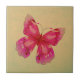 Design of beautiful, delicate pink butterfly, artistically drawn with inspirations from Asian or oriental style art influence. This design is set against a pale yellow background and has an overall vintage or retro feel.