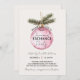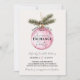 Ornament exchange Christmas party invitation with a beautiful pink bauble and a soft cream background. Personalise it with the host name, date, location, rsvp, and a message to your guests.