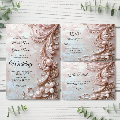 Beautiful Pink Ornate Pearl and Floral Rehearsal Dinner Invitation