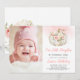 Pink 1st Birthday Pumpkin and floral Watercolor Photo Invitation. An easy-to-use application. Add your photo, edit background and text colours, wording, font style, size of font right on your browser. Matching items in our store.