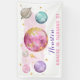 This magical design features whimsical imaginary planets, moon and stars in pink, purple, turquoise and gold colorway. Customise the sign with any text you want!