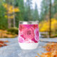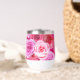 This colourful wine tumbler features our floral collage of delightful pink flowers, showcasing a spectrum of shades from soft blush to vibrant fuchsia. Gorgeous floral wine glass, free to personalise, for a special event, wedding, birthday party, holidays, or delightful gift for someone who loves pink.