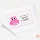 Pink owl book label stickers | School supplies for little girls. Cute cartoon animal bird with personalizable kids name and text. Childrens design.