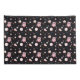 whimsical pattern of light pink owls, soft purple moons, and playful polka dots and stars on a midnight black background.