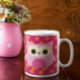This cute owl is all dressed up in pink and polka dots and lets everyone know hoos cuppa this sweet mug is. Great as a gift or just to brighten up a dreary winter day.