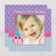 Celebrate your little girl's first birthday with this cute owl 1st birthday photo invitation. Featuring a pink owl on a polka dot background. Shown in pink, purple and teal blue. Easily personalise with your party information and child's photo.